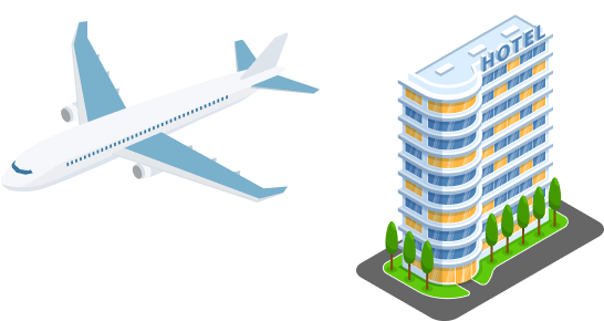 通常の国際線手配に加えて、出発前日に空港近くのホテルも手配いたします。
