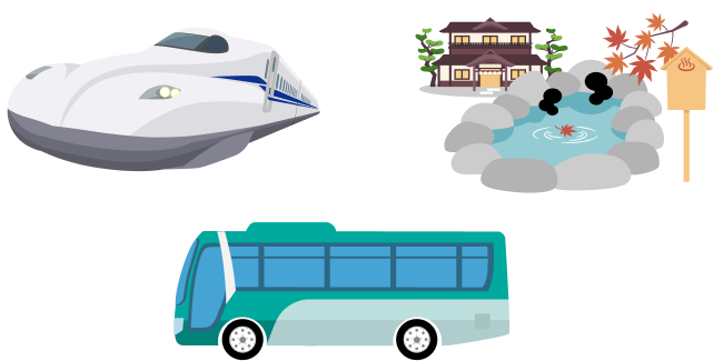 JR(新幹線)と現地に到着してからの貸切バスと温泉宿も手配したい。